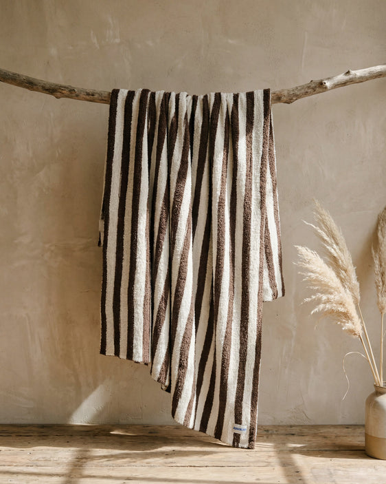 Saturday Stripe Plush Throw | Mocha & Cream